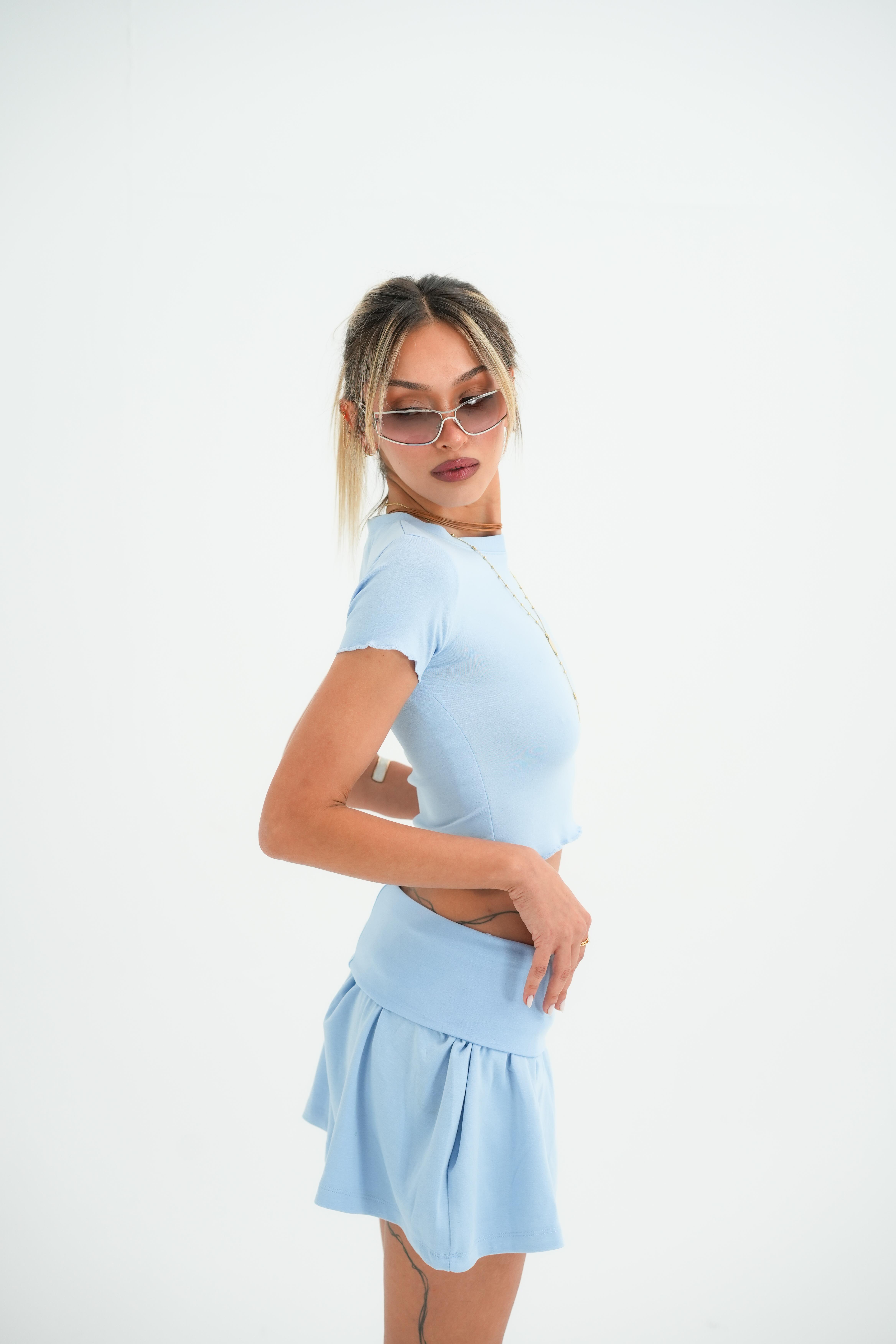 - İçi şortlu , esnek , yüksek katlamalı bel detaylı etek.