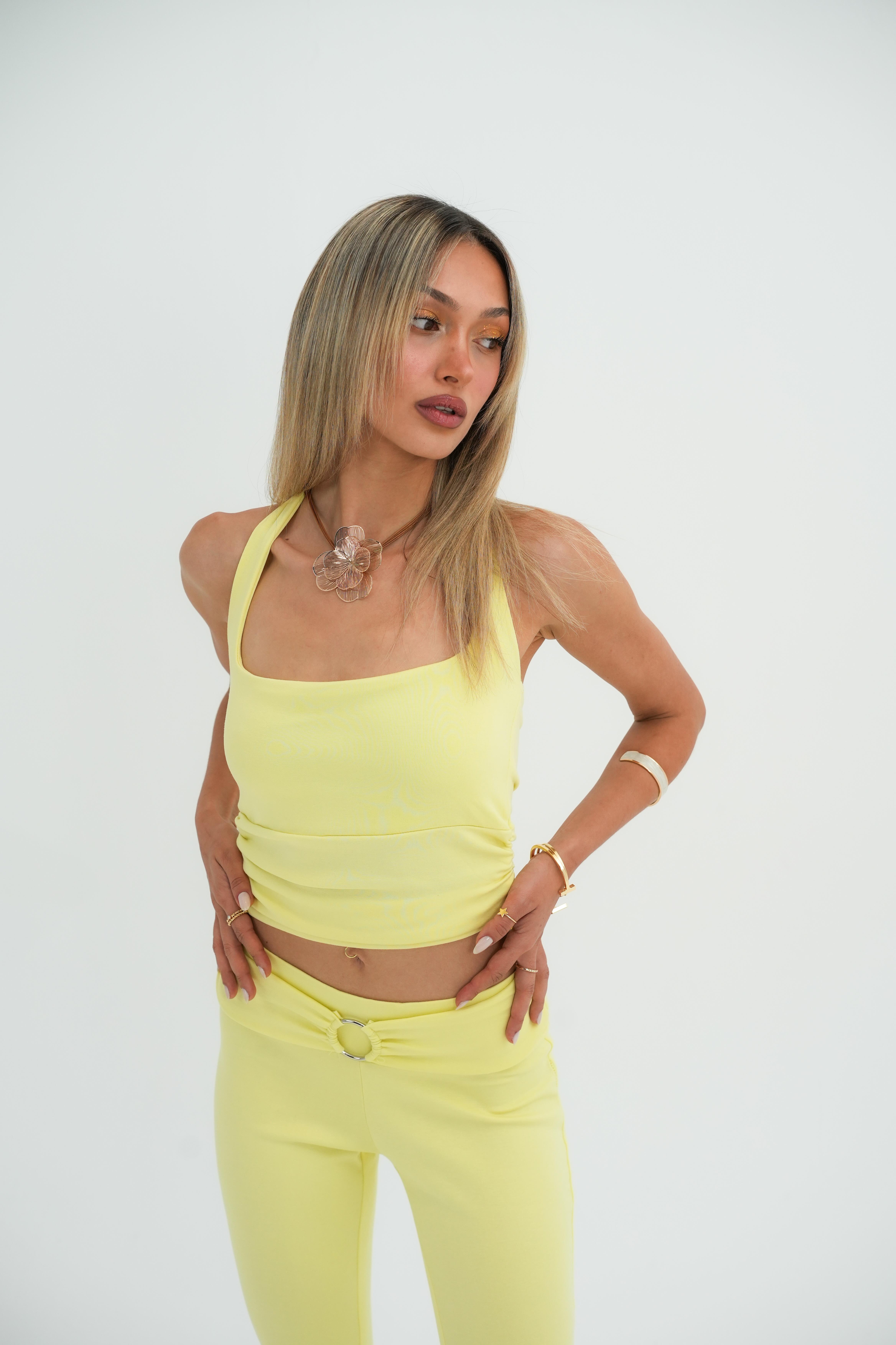 - NAIA, zarif drape detayı ve güçlü halter kesimiyle feminen enerjiyi modern bir duruşla buluşturur.